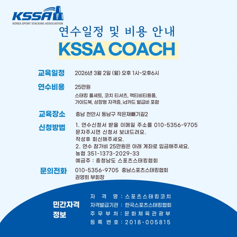 ■ 자격명 : 스포츠스태킹 코치(Sport Stacking Coach) ■ 자격의 종류 : 등록민간자격