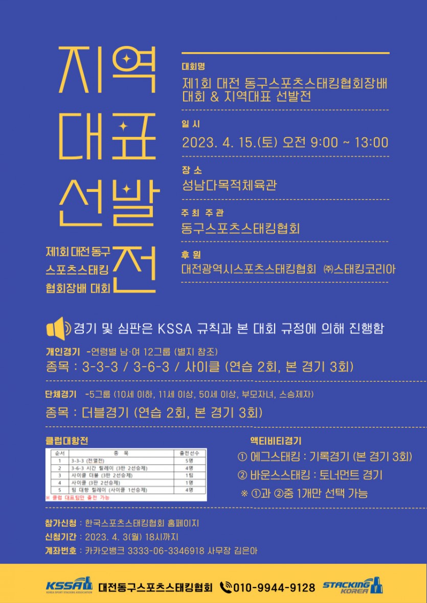 제1회 대전 동구스포츠스태킹협회장배 대회& 지역대표 선발전 페이지 정보 작성자 한국스포츠스태킹협회 댓글 0건 조회 933회 작성일 23-03-17 17:53 . 목록 이전글제10회 대전서구청장배 전국 스포츠스태킹대회 23.06.06 다음글ISSF 2023 대전 세계 스포츠스태킹 대회 23.02.20 댓글목록 댓글목록 등록된 댓글이 없습니다.